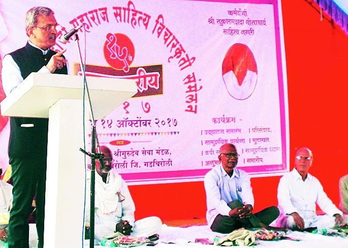 संमेलनाच्या उद्घाटनानंतर मार्गदर्शन करताना गोंडवाना विद्यापीठाचे प्र-कुलगुरू डॉ. चंद्रशेखर भुसारी म्हणाले, सामुदायिक प्रार्थना, ध्यान व आचरणातून राष्टÑसंतांचे विचार प्रदर्शित होणे गरजेचे आहे. तेव्हाच राष्टÑसंतांच्या विचारांचा अंगिकार झाला असे म्हणता येईल. राष्ट्रसंतांच्या विचारातूनच निकोप समाज निर्माण होऊ शकतो. त्यामुळे राष्ट्रसंतांचे विचार अंगिकारावे. गोंडवाना विद्यापीठात राष्टÑसंतांच्या साहित्याचा समावेश करण्याकरिता आपण पाठपुरावा करू, असेही ते म्हणाले. याप्रसंगी डॉ. शिवनाथ कुंभारे म्हणाले, व्यक्ती स्वत:चा विचार अधिक करतो. तेव्हा समाजाचा विचार कोण करणार, राष्टÑसंतांनी अध्यात्म, अंधश्रद्धा यावर मार्मिक भाष्य ग्रामगितेत केले आहे. राष्ट्रसंतांच्या प्रत्येक ओवीतून जीवन जगण्याचा मार्ग आहे. त्यांचे विचार योग्य जीवनशैलीची शिकवण देतात. त्यामुळे सामुदायिक प्रार्थना व ध्यान प्रत्येक घरात पोहोचविण्याची गरज आहे.