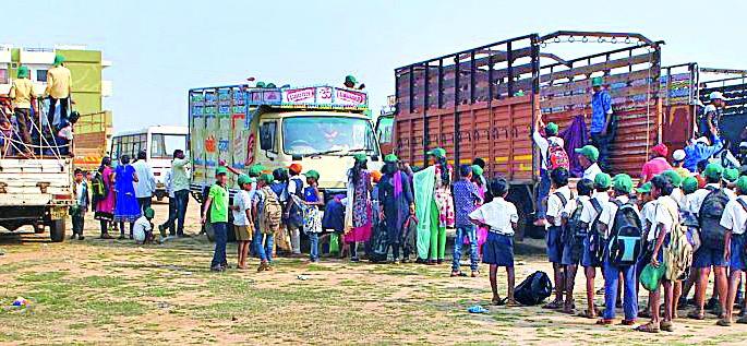 मालवाहू वाहनातून आणले शाळकरी मुला-मुलींना