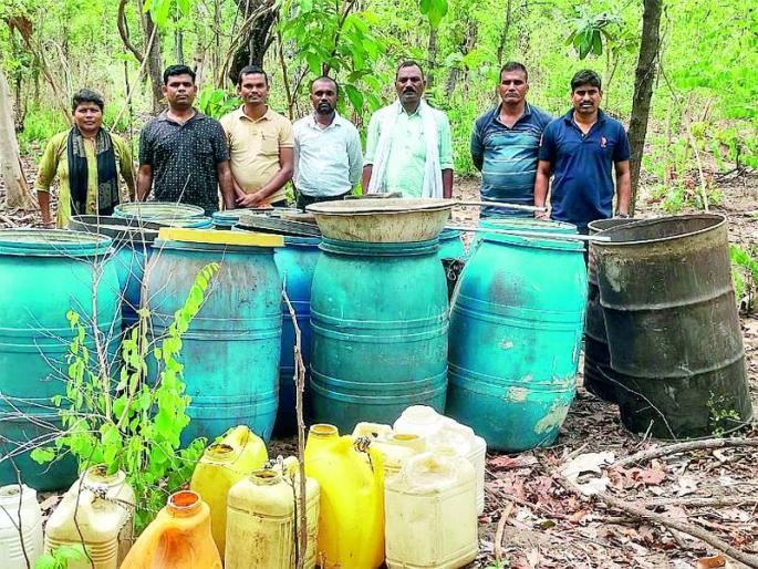 ठळक मुद्देसहा आराेपी फरार, स्थानिक गुन्हे शाखेची जंगलात कारवाई; तळ्याच्या परिसरात हाेत्या भट्ट्या