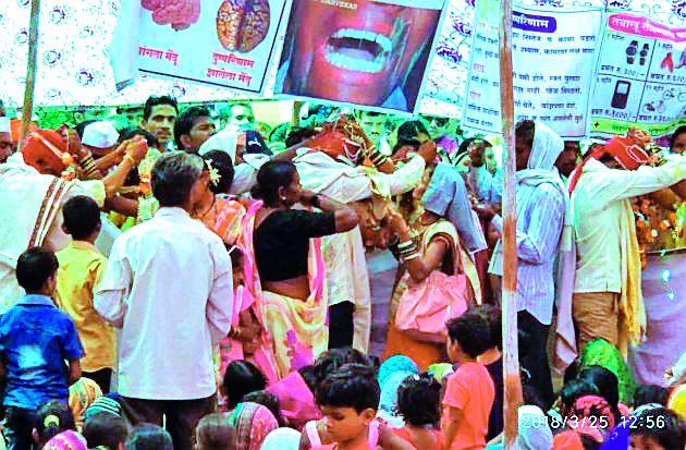 आॅनलाईन लोकमतदेसाईगंज : रामनवमीचे औचित्य साधून आमगाव येथे सामुहिक विवाह सोहळ्याचे आयोजन रविवारी करण्यात आले होते. या सोहळ्यात एकूण सहा जोडपी विवाहबध्द झाली.या विवाह सोहळ्याला आमदार कृष्णा गजबे, जिल्हा परिषदेचे कृषी सभापती नाना नाकाडे, नगराध्यक्ष शालू दंडवते, उपाध्यक्ष मोतीलाल कुकरेजा, सरपंच योगेश नाकतोडे, पं.स. सदस्य रेवता अलोणे, शेवंता अवसरे, देसाईगंजचे माजी नगराध्यक्ष जेसा मोटवानी, अॅड. संजय गुरू, सतपाल नागदेवे, ईश्वर कुमरे, लोकमान पिलारे, सावंगीचे सरपंच राजू बुल्ले, भाग्यवान खोब्रागडे आदी मान्यवर उपस्थित होते.श्री हनुमान बहुउद्देशीय सेवा समिती आमगावच्या वतीने सन १९९९ पासून राम नवमीनिमित्त सामुहिक विवाह सोहळ्यांचे आयोजन केले जात आहे. या विवाह सोहळ्यात आतापर्यंत १०५ जोडपी विवाहबध्द झाले आहेत. आमगाव येथील राम मंदिर आमराईने नटलेल्या निसर्गरम्य परिसरात आहे. या विवाह सोहळ्याचे आयोजन विश्वस्त मंडळाचे अध्यक्ष नारायण देशमुख, गुरूदेव सेवा मंडळाचे अध्यक्ष विनोद जक्कमवार यांच्या संकल्पनेतून केले जात आहे. रामनवमीनिमित्त सामुहिक विवाह सोहळ्याची परंपरा मागील अनेक वर्षांपासून जपली जात आहे. सामुहिक विवाह सोहळ्यात सहभागी झालेल्या जोडप्यांना भेट वस्तू देऊन गौरविण्यात आले. आमगाव येथील या अनोख्या उपक्रमाचे नागरिकांकडून कौतुक केले जात आहे.यावेळी मार्गदर्शन करताना आमदार कृष्णा गजबे यांनी धार्मिक कार्यक्रमाप्रसंगी अशा प्रकारचे सामाजिक उपक्रम राबविले जात असल्याने याचा फायदा समाजाला होतो. अशा प्रकारचे उपक्रम इतरही गावांनी राबवावे. यामुळे लग्नांवर होणारा अनावश्यक खर्च कमी होण्यास मदत होईल, असे प्रतिपादन केले. लग्न मंडपाच्या परिसरात तंबाखूचे दुष्परिणाम दर्शविणारे फलक लावण्यात आले होते. सदर फलक लक्ष वेधून घेत होते.