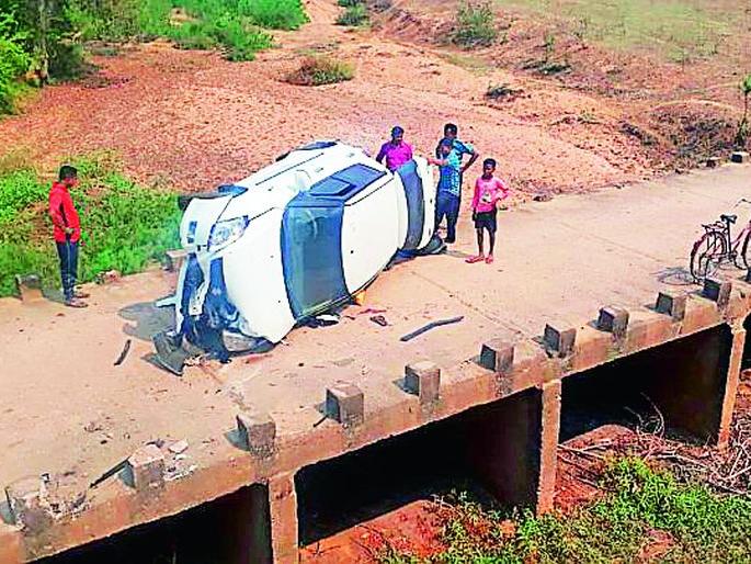 भरधाव कार मोठ्या पुलावरून जुन्या लहान पुलावर कोसळली