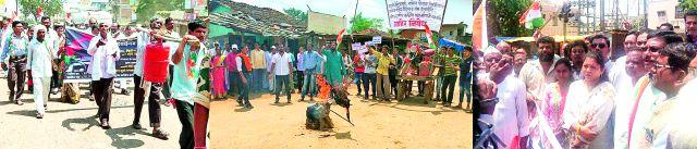 कुरखेडा : तालुका काँग्रेस कुरखेडाच्या वतीने सोमवारी बाजारपेठ बंदचे आवाहन करण्यात आले होते. याला चांगला प्रतिसाद मिळाला. शासनाच्या विरोधात निदर्शने सुध्दा देण्यात आली. आंदोलनाचे नेतृत्व माजी आ.आनंदराव गेडाम, माजी जि.प. उपाध्यक्ष जीवन नाट, तालुका काँग्रेस अध्यक्ष जयंत हरडे, महिला तालुका अध्यक्ष जयश्री धाबेकर, जि.प.सदस्य प्रल्हाद कराडे, प्रभाकर तुलावी, पं.स. सभापती गिरधर तितराम, उपसभापती मनोज दुनेदार, नगरसेवक आशा तुलावी, मनोज सिडाम, उस्मान खान, काँग्रेस ओबीसी सेलचे अध्यक्ष मनोहर लांजेवार, आनंदराव जांभुळकर, पुंडलिक निपाने, सरपंच संजय कोरेटी, टेमनशहा सयाम, उमाजी धुर्वे, टिकाराम कोरेटी, अनिराम बोगा, उपसरपंच राजीव होळी, रोहीत ढवळे, तुकाराम मारगाये, आसीफ शेख अशफाक खान, पं.स. सदस्य शारदा पोरेटी, सिंधू हलामी, मडावी, माधव दहिकर, प्रभाकर तितीरमारे, पांडुरंग लंजे, तानाजी कुमोटी, शेषराव नैताम, अगरसिंग खडाधार, गणपत उसेंडी, गिरीधर मुगंमोडे, पुंडलिक लांजेवार, दुर्योधन सहारे, प्रमीला हलामी, यशोदा कवडो, रेखा कापगते, लता कापगते, यशवदा हलामी, सुनिता कोरेटी, मंदा उईके, रेवता हलामी, मनोरमा हलामी, गिरीधर मुगंमोडे व काँग्रेस कार्यकर्ते बहुसंख्येने उपस्थित होते.