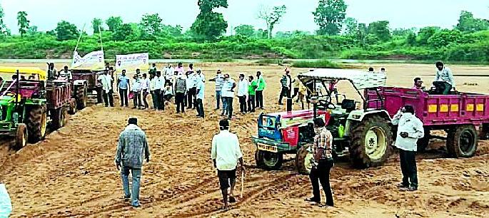 ठळक मुद्दे४० ट्रॅक्टर व १० बैलबंड्यांचा समावेश : सती नदीघाटावर सविनय कायदेभंग, अनोख्या आंदोलनातून वेधले शासनाचे लक्ष
