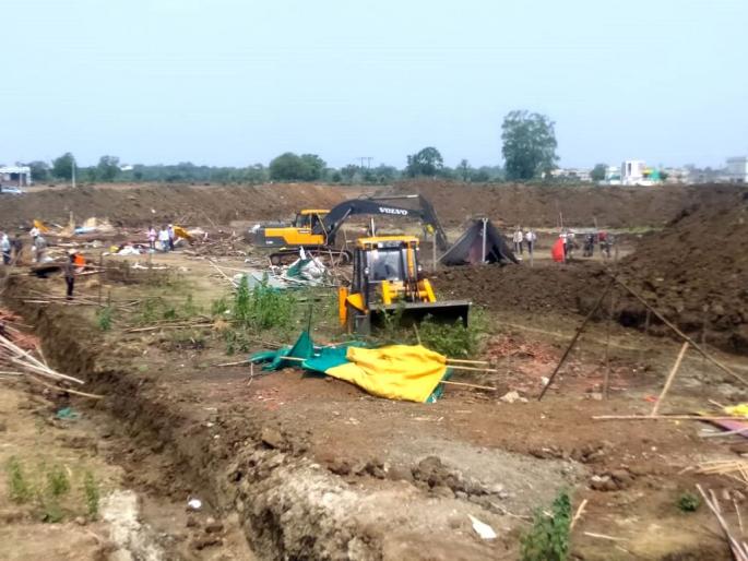 दरम्यान जेसीबी, पोकलॅन्ड, ट्रॅक्टर, अग्निशमन दल तसेच अधिकारी व कर्मचाऱ्यांच्या वाहनांसह पाोलिस बंदोबस्त व प्रशासनाचा प्रचंड फौजफाटा येथे दाखल झाला. येथील झोपड्या बुलडोजरच्या सहाय्याने पाडण्यात आल्या. दरम्यान कवेलू, फाटे व इतर साहित्यांची नासधूस झाली. काही अतिक्रमणधारकांनी कसेबसे आपले संसारपयोगी साहित्य बाहेर काढले. तर काही जणांना असे साहित्य काढण्याची संधीही मिळाली नाही.