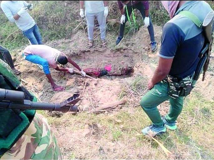 लाेकमत न्यूज नेटवर्कभामरागड : गावातील सरपंचाच्या मुलाने एका अल्पवयीन प्रेयसीची हत्या करून पुरावा नष्ट करण्यासाठी मृतदेह जमिनीत गाडून टाकण्याचा प्रकार उघडकीस आला. ही मुलगी चार दिवसांपासून बेपत्ता होती. दरम्यान, तिचा मृतदेह हाती लागताच सदर संशयित आरोपीने गावातून पलायन केले आहे. ही घटना दामरंचा पोलीस स्टेशनअंतर्गत भामरागड तालुक्यातील मन्नेराजाराम (गेर्राटोला) येथे घडली. मीना येर्रा सिडाम (१७ वर्षे) असे मृत मुलीचे नाव आहे. मीना ही चार-पाच दिवसांपासून बेपत्ता असल्याची तक्रार तिच्या आई-वडिलांनी पोलिसांत केली होती. तिचा शोध सुरू असतानाच गावाजवळच्या शेतात मीनाची चप्पल दिसली. त्यानंतर एका ठिकाणी खड्डा करून माती टाकल्याचे व त्यातून थोडी ओढणी बाहेर आल्याचे दिसले. त्यामुळे लागलीच पोलिसांना माहिती देऊन खड्ड्यातील माती काढली असता मीनाचा मृतदेह आढळला. भामरागडचे तहसीलदार अनमोल कांबळे यांच्या उपस्थितीत गावकऱ्यांच्या समक्ष दामरंचा पोलिसांनी मृतदेह बाहेर काढला. तो मृतदेह बेपत्ता असलेल्या मीनाचाच असल्याची खात्री गावकऱ्यांनी केली. गावचे सरपंच रंगा पोचा मडावी यांच्या मुलाचे आणि सदर मुलीचे प्रेमसंबंध होते, अशी माहिती गावचर्चेवरून पोलिसांना मिळाली. विशेष म्हणजे सरपंचांचा मुलगा या घटनेनंतर फरार झाला.