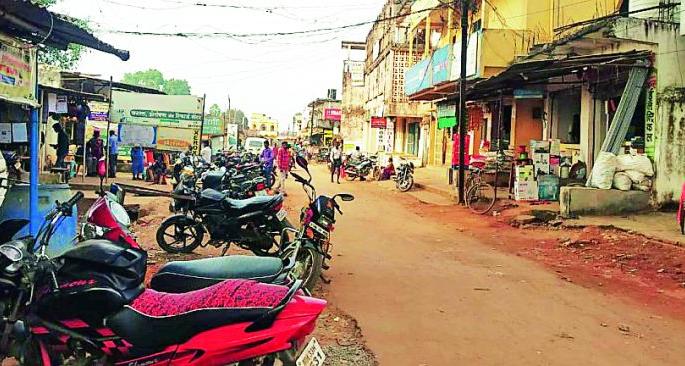 लोकमत न्यूज नेटवर्कसिरोंचा : सिरोंचा शहरातील मुख्य मार्गालगत असलेल्या दुकानदारांनी समोरच्या भागात अतिक्रमण केले. शिवाय रस्त्याच्या कडेला चारचाकी व दुचाकी वाहने उभी ठेवली जातात. परिणामी मुख्य मार्ग अरूंद बनला. त्यामुळे या मार्गावर बऱ्याचदा वाहतूक विस्कळीत होत असते.सन २०१५ मध्ये सिरोंचा ग्राम पंचायतीचे नगर पंचायतीमध्ये रूपांतर झाले. सिरोंचा येथे राज्य शासनाच्या वतीने नगर पंचायतीची स्थापना करण्यात आली. मात्र ज्या गतीने विकासाची कामे व्हायला पाहिजे होती तशी गती व बदल शहरात दिसून येत नाही. परिणामी शहराच्या मुख्य मार्गावरील डांबरीकरण अनेक ठिकाणी उखडले असून जागोजागी खड्डे पडले आहेत. सदर मार्गावरून आवागमन करण्यासाठी वाहनधारकांना तारेवरची कसरत करावी लागत आहे.सिरोंचा शहरात बँक आॅफ इंडिया शाखेच्या समोर पार्र्किंगसाठी जागाच उपलब्ध नसल्याने वाहनधारक आपली वाहने रस्त्यावर तसेच जागा मिळेल त्या ठिकाणी ठेवतात. त्यामुळे मुख्य मार्ग अरूंद बनला आहे. शहराच्या मुख्य मार्गावरच बाजारपेठ असल्याने मोठी अवजड वाहने येथून आवागमन करतात. तसेच या मार्गावर मटन मार्केट आहे. त्यामुळे येथे ग्राहकांची मोठी गर्दी असते. अनेक वाहनधारक आपली दुचाकी वाहने रस्त्यावर उभी करीत असतात. परिणामी रस्ता अरूंद बनत आहे.नगरम चौक ते सिरोंचा शहर तसेच बसस्थानक मार्गसुद्धा अरूंद झाला असून या मार्गाने तेलंगणा, छत्तीसगड राज्यातून येणाºया लहान-मोठ्या वाहनांची संख्या प्रचंड वाढली आहे. त्यामुळे सदर मार्गाचे रूंदीकरण व मजबुतीकरण करणे गरजेचे आहे, तशी मागणीही होत आहे. राज्य शासन, प्रशासन व स्थानिक लोकप्रतिनिधींनी सिरोंचा शहराच्या विकासासाठी रस्ते, नाली बांधकाम व इतर ठोस कामांचे नियोजन करावे, अशी मागणी शहरवासीयांनी केली आहे.
