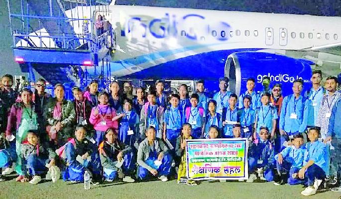 आदिवासी विद्यार्थ्यांनी लुटला विमान प्रवासाचा आनंद