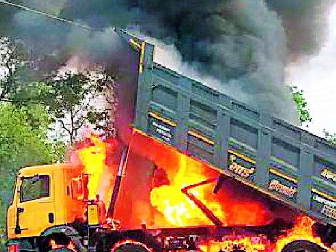 वीजतारांना स्पर्श होऊन ट्रकला आग