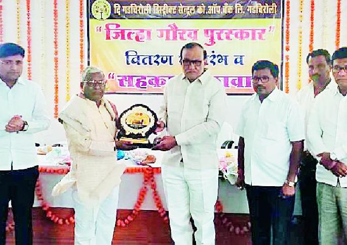 लोकमत न्यूज नेटवर्कआरमोरी : गडचिरोली जिल्हा मध्यवर्ती सहकारी बँकेच्या वतीने दिला जाणारा सन २०१९-२० या वर्षाचा जिल्हा गौरव पुरस्कार कुरखेडा तालुक्यातील वाकडीतील ज्येष्ठ सहकार व सामाजिक कार्यकर्ते वसंतराव मेश्राम यांना गुरूवारी (दि.२६) आरमोरी येथे देण्यात आला. ज्येष्ठ सहकार नेते अरविंद पोरेड्डीवार यांच्या हस्ते रोख ५१ हजार रु पये, सन्मानचिन्ह, शाल, श्रीफळ व पुष्पगुच्छ देऊन त्यांना सन्मानित करण्यात आले.कार्यक्र माच्या अध्यक्षस्थानी आमदार कृष्णा गजबे, तर प्रमुख अतिथी व मार्गदर्शक म्हणून अरविंद पोरेड्डीवार, प्रमुख अतिथी म्हणून गडचिरो नागरी सहकारी बँकेचे अध्यक्ष प्रकाश पोरेड्डीवार, जिल्हा मध्यवर्ती सहकारी बँकेचे अध्यक्ष प्रंचित पोरेड्डीवार, उपाध्यक्ष श्रीहरी भंडारीवार, मानद सचिव अनंत साळवे, संचालक खेमनाथ पाटील डोंगरवार, डॉ.दुर्वेश भोयर, आरमोरीचे नगराध्यक्ष पवन नारनवरे, आरोग्य सभापती भारत बावनथडे, पाणीपुरवठा सभापती विलास पारधी, कुरखेडा नगर परिषदेचे अध्यक्ष रवींद्र गोटेफोडे आदी प्रामुख्याने उपस्थित होते.यावेळी मार्गदर्शन करताना अरविंद पोरेड्डीवार म्हणाले, लोकांमध्ये राहणारा माणूस एकटा राहू शकत नाही. माणूस जन्माला आल्यानंतर त्याची एन्ट्री रडत होते. मात्र त्याचा शेवटही रडत होतो. माणूस किती जगला यापेक्षा तो कसा जगला, त्याच्या जगण्याची उपलब्धी समाजास किती हे जास्त महत्वाचे. वसंतराव यांचे सहकार, शैक्षणिक क्षेत्रातील कार्य लाखमोलाचे असल्याचे ते म्हणाले.या कार्यक्रमाचे औचित्य साधून आरमोरी तालुक्यातील यशवंत देशमुख वडधा, शंकर जवादे बोडदा, मुखरू हूलके देलवडा, पांडुरंग दोनाडकर शिवनी, गुरूदेव राऊत सायगाव, बारीकराव पदा देलनवाडी, अरूण दुमाने शिरसी, दीपक निंबेकर आरमोरी, हिरालाल कानतोडे कासवी, महेंद्र तावडे वैरागड, रामभाऊ नरूले आकापूर, उमाजी भुसारी नरोटी, रामकृष्ण तामशेट्टीवार रवी आदी १३ सेवा सहकारी संस्थेच्या अध्यक्षांना सन्मानचिन्ह व पुष्पगुच्छ देऊन सन्मानित करण्यात आले. कार्यक्रमाचे प्रास्ताविक बँकेचे मुख्य कार्यकारी अधिकारी एस.पी.आयलवार, संचालन प्रा.नरेंद्र आरेकर, तर आभार बँकेचे व्यवस्थापक अरूण निंबेकर यांनी मानले.