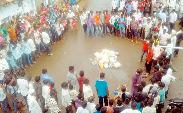 वडधात ग्रामस्थांनी केली दारूची होळीचार दारू विक्रेत्यांवर कारवाई : गावकºयांनी केला दारूबंदीचा निर्धार