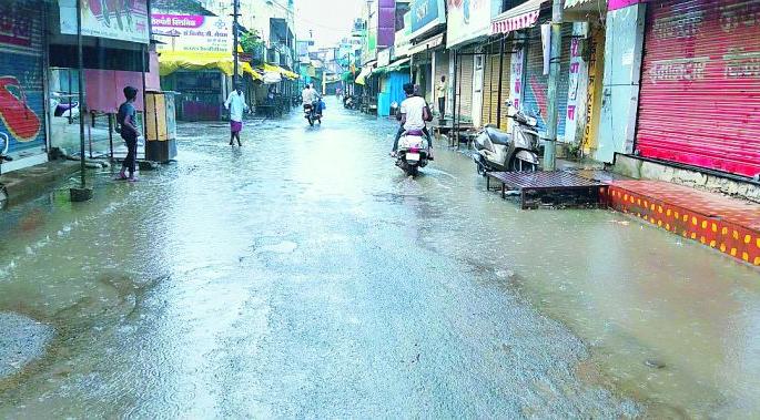 मुख्य बाजारपेठ परिसरातील पावसाचे तसेच सांडपाण्याचा योग्यरित्या निचरा व्हावा, या उद्देशाने नगर परिषद प्रशासनाने लाखो रुपये खर्च करून भूमिगत नाल्या बांधल्या. मात्र या नाल्या बांधकाम करताना योग्य उतार ठेवण्यात आला नाही. परिणामी अल्पशा पावसाने रस्त्यावर पाणी जमा होत आहे. या कामावर पालिकेचे लाखो रुपये खर्च झाले. मात्र उद्देश सफल झाल्याचे अजूनही दिसून येत नाही.