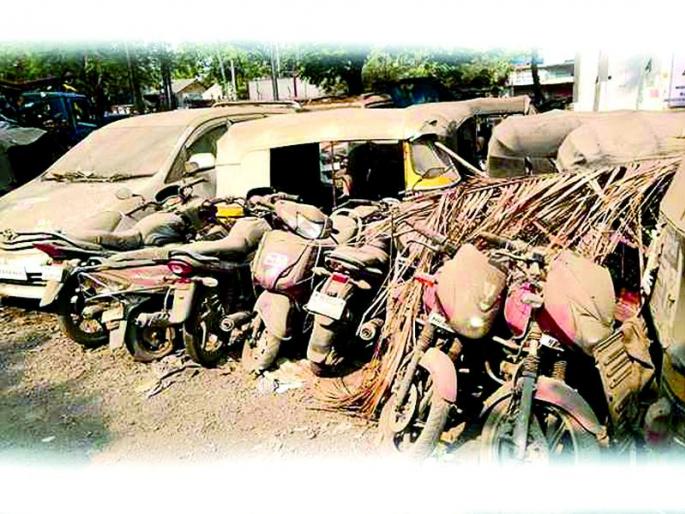 या वाहनांनी व्यापली पाेलीस स्टेशनची जागाक्षतिग्रस्त वाहने पाेलीस स्टेशनमध्ये पडून आहेत. या वाहनांनी जागा व्यापली असल्याने पाेलीस स्टेशनला जागा कमी पडत आहे. त्यामुळे या वाहनांचे काय करावे, असा माेठा प्रश्न पाेलिसांसमाेर पडला आहे.