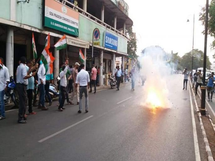 फटाक्यांच्या आतषबाजीवेळी काँग्रेसचे कोणी आमदार उपस्थित राहू शकले नाहीत. काँग्रेस प्रदेशाध्यक्ष गिरीश चोडणकर हे मडगावला होते. त्यामुळे ते येऊ शकले नाहीत. मात्र काँग्रेसमधील महिला व पुरुष कार्यकर्त्यांनी हातात ङोंडा घेतला व काँग्रेस हाऊससमोर आनंद साजरा केला. हवेत काँग्रेसचा ध्वज फडकावून काँग्रेसचा विजय असो, अशा प्रकारच्या घोषणा देण्यात आल्या. यावेळी मिठाई वाटूनही आनंद साजरा केला गेला. काँग्रेस हाऊससमोर असलेल्या मुख्य रस्त्यावर झालेल्या फटाक्यांच्या आतषबाजीवेळी काहीवेळा वाहतूक थांबविली गेली.