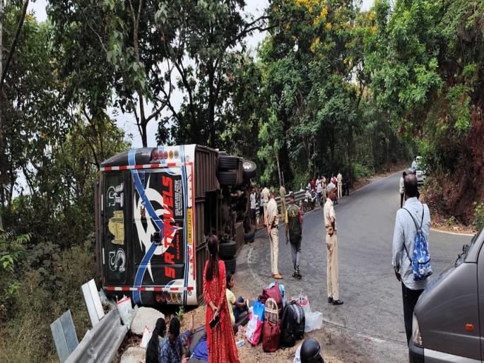 नगरगाव : चोर्ला घाटामध्ये खाजगी आरामबस उलटून बारा प्रवासी जखमी झाले. सकाळी हा अपघात घडला. जखमींवर गोवा मेडिकल कॉलेजमध्ये (गोमेकॉ) उपचारासाठी दाखल करण्यात आले आहे. या बसमध्ये ३० पेक्षा जास्त प्रवासी होते. एस. आर. ट्रॅव्हल्सची ही आरामबस हैदराबादवरून गोव्याच्या दिशेने येत होती.