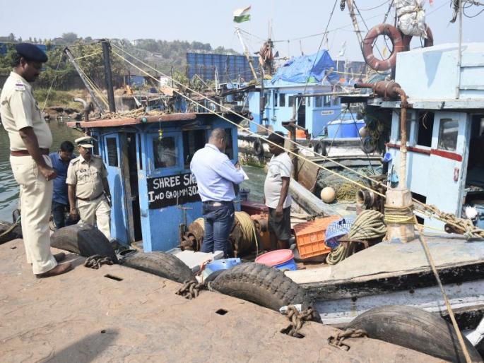 कॅप्शन: वास्को पोलीस खून झालेल्या ट्रॉलरवर पंचनामा करताना