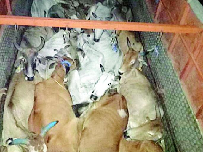 कत्तलखाण्यात जाणाऱ्या ४५ जनावरांची मुक्तता