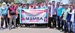 संघटनेची निदर्शने : मेडिकल रिप्रेझेंटेटिव्ह असोसिएशनचे आंदोलनगोंदिया : वैद्यकीय व विक्री प्रतिनिधींसाठी कामाचे आठ तास निश्चित करण्यासाठी अनेक वर्षांपासून संघर्ष सुरू आहे. सन २०१४ मध्ये शासनाने त्यांच्या कामाचे १० तास निश्चित केल्याने एमएसएमआरए (महाराष्ट्र सेल्स अॅन्ड मेडिकल रिप्रेझेंटेटिव्ए असोसिएशन) या संघटनेने आक्षेप घेवून अधिसूचनेत सुधारणा करण्याची मागणी राज्य कामगारमंत्र्यांकडे केली. त्याकडे लक्ष दिले जात नसल्यामुळे गुरूवारी (दि.२६) जिल्हाधिकारी कार्यालयावर निदर्शने करण्यात आली.सन २००७ पासून संघटनेच्या नेतृत्वात वैद्यकीय व विक्री प्रतिनिधींसाठी (एम.आर.) कामाची वेळ आठ तास निश्चित करण्यासाठी सातत्याने संघर्ष सुरू होता. सततच्या या आंदोलनामुळे तसेच राज्य शासनासोबत झालेल्या बैठकानंतर १५ जानेवारी २०१४ रोजी राज्य शासनाचे एक अधिसूचना जाहीर केली. या अधिसूचनेमुळे वैद्यकीय व विक्री प्रतिनिधींच्या कामाचे आठ तासांऐवजी १० तास करण्यात आले. संघटनेने यावर आक्षेप घेवून अधिसूचनेत सुधारणा करण्याची मागणी राज्य कामगार मंत्र्यांकडे केली. त्यात सुधारणा करण्याचे आश्वासन राज्य शासनाने दिले. त्यानंतर नवीन राज्य सरकार आले. पण आजपावेतो सरकारने मागण्यांकडे दुर्लक्षच केले. राज्य शासनाविरूद्ध गुरूवारी (दि.२६) जिल्हाधिकारी कार्यालयासमोर धरणे, रॅली व निदर्शने करण्यात आली. यात अनेक वैद्यकीय व विक्री प्रतिनिधी सहभागी झाले होते. त्यात आठ तासांच्या कामाच्या सुधारित वेळेबाबत अधिसूचना जारी करण्यासोबतच इतर चार मागण्यांचा समावेश होता. यावेळी संघटनेचे सचिव प्रल्हाद सार्वे, राज्यस्तर सदस्य निशांत मिश्रा, इतर सदस्य राजेश ब्राह्मणकर, योगेश नागवंशी, क्रिष्णा चौरागडे, एच.आर. रोकडे, दिनेश मिश्रा, विकास व्यास, व्यंकट यामलवार आदी अनेक जण उपस्थित होते.