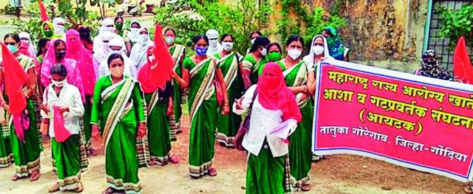 लोकमत न्यूज नेटवर्कगोंदिया : कोरोना संसर्गाच्या काळात आरोग्य सर्वेक्षण ते रुग्णांची सेवा करण्याचे काम आशा सेविकांनी आपला जीव धोक्यात घालून केले. मात्र अद्यापही आशा सेविकांना मानधन देण्यात आले नाही. केवळ ३५ रुपये मजुरीवर त्यांना राबवून घेतले जात आहे. त्यामुळे या विरोधात राज्यभरातील आशा सेविकांनी एकत्र येत मंगळवारपासून (दि.१५) बेमुदत संपावर गेले आहे. जोपर्यंत मागण्या पूर्ण होत नाही तोपर्यंत आंदोलन मागे न घेण्याचा निर्णय घेतला आहे. मागील वर्षभर कोरोना संसर्गाच्या काळात जीवावर उदार होऊन काम करणाऱ्या ७२ हजार आशा व गटप्रवर्तकांना राज्य सरकारने फुटकी कवडीही काेरोनाच्या कामापोटी दिलेली नाही. केंद्र सरकारकडून कोरोना भत्ता म्हणून महिन्याला १००० रुपये म्हणजे प्रतिदिन ३५ रुपये दिले जातात. कोरोनाच्या सुरुवातीच्या काळात मास्क, हातमोजे, सॅनिटाइजर आदी मिळाले. मात्र गेल्या वर्षभरात बहुतेक ठिकाणी काहीच दिले जात नव्हते तर काही ठिकाणी अर्धवट वस्तू देत होते. आशा सेविका घरोघरी जाऊन पल्स ऑक्सिमीटर, ताप मोजण्यापासून आरोग्याच्या वेगवेगळ्या नोंदी करतात. एका आशाला किमान ५० घर रोज करावी लागतात. याशिवाय आरोग्य केंद्रावर जाऊन लसीकरणापासून रुग्ण तपासणीत मदत करावी लागते. शिवाय आरोग्य विभागाचे डॉक्टर सोपवतील ती कामे करावी लागतात. साधारणपणे ८ ते १२ तास काम करून घेतले जाते. त्याबद्दल महिन्याकाठी १००० रुपये म्हणजे रोज ३५ रुपये दिले जातात. आशांच्या व कुटुंबीयांच्या आरोग्याची कोणतीच जबाबदारी सरकार घेत नाही. आशा व कुटुंबीयांना कोणतेही विमा कवच, आरोग्य संरक्षण नाही, आजारी पडल्यामुळे कामावर आले नाही तर मानधन कापले जाते.आशांना कोरोना काळात केलेल्या कामाचे किमान १८ हजार रुपये मासिक वेतन मिळाले पाहिजे. कुटुंबातील एकाला सरकारी नोकरी देण्यात यावी. आशा सेविकांनी गेले वर्षभर कोणतीही तक्रार न करता कोरोनाची सर्व कामे केली. सनदशीर मार्गाने संघटनेने मागण्यांची निवेदने दिली. मात्र सरकारने आशांच्या निवेदनांना फुटक्या कवडीचीही किंमत न दिल्यामुळेच बेमुदत संप करण्याची वेळ आल्याचे आशा सेविकांनी म्हटले आहे. याच सर्व मागण्यांकडे शासनाचे लक्ष वेधण्यासाठी आयटकचे हौसलाल रहांगडाले यांच्या नेतृत्वात आशा सेविकांनी मंगळवारी जिल्ह्यात ठिकठिकाणी निदर्शने केली.