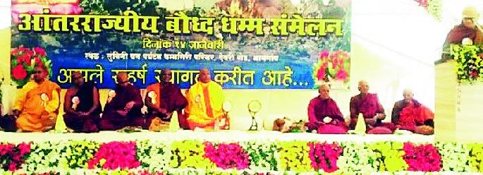लोकमत न्यूज नेटवर्कआमगाव : भारताबाहेरील थायलंड, म्यानमार, श्रीलंका, चीन, जपान अशा अनेक देशांत बौद्ध धम्माचा प्रसार आणि प्रचार मोठ्या प्रमाणात झाला. मात्र त्याप्रमाणात भारतात या धम्माचा प्रसार झाला नव्हता. मात्र डॉ. बाबासाहेब आंबेडकरांनी जगातल्या प्रमुख धर्माचा अभ्यास करुन समता व आचरणावर आधारित वैज्ञानिक धम्माचा स्विकार केला. त्यामुळेच भारतात नसलेला धम्म बाबासाहेबांमुळे भारतात सर्वत्र पसरला असे प्रतिपादन भदंत डॉ.डी.रेवत महाथेरो यांनी केले.येथील लुंबिनी वन पर्यटन समितीच्यावतीने धम्मगिरी येथे रविवारी आयोजित आंतरराष्ट्रीय बौद्ध धम्म संमेलनाच्या उद्घाटनप्रसंगी ते बोलत होते. उद्घाटन म्यानमारचे भदंत डॉ. यु. चंद्रामुनी महाथेरो यांच्या हस्ते करण्यात आले. प्रमुख पाहुणे म्हणून श्रीलंकेचे चंद्ररतन थेरो, तपस्वी थेरो, नागसेव बोधी, श्रद्धाबोधी थेरो, गुजरातचे प्रज्ञारत्न डॉ. जीवक थेरो, भदंत धम्मशिखर, भंते अनिरुद्ध, भंते महेंद्र भंते, धम्मतप, डॉ. बुद्धरत्न महाथेरो व भिख्खु संघ उपस्थित होते.तर दुसऱ्या सत्रात धम्मपरिषदेचे आयोजन करण्यात आले होते. अध्यक्षस्थानी चंद्रबोधी पाटील होते. मुख्य मार्गदर्शक डॉ. रमेश राठोड, तनुजा नेपाळे व प्रमुख पाहुणे म्हणून बालेश्वर चौरे, कुवर रामटेके, इंजि. आर. एन. रावते, भरत वाघमारे, समितीचे अध्यक्ष शिवचरण शिंगाडे, संस्थापक सचिव यादव मेश्राम, वैशाली खोब्रागडे, राजभूषण मेश्राम, महेंद्र मेश्राम, राजकुमार वंजारी, रजनी रामटेके, ज्योती तागडे, एल.एच. बन्सोड, नरेश शेंडे, सुनील गजभिये, रामेश्वर श्यामकुंवर, चिंकेश शेंडे, अनुप गडपांडे, राकेश रामटेके, मुनेश्वर मेश्राम उपस्थित होते.यावेळी ‘मानवी कल्याणासाठी वैज्ञानिक बुद्ध धम्माची गरज’ या विषयावर डॉ. राठोड यांनी तर नेपाळे यांनी ‘धम्म संस्कारात महिलांची भूमिका’ या विषयावर विस्तृत मार्गदर्शन केले. संमेलनादरम्यान नि:शुल्क आरोग्य निदान शिबिराचे आयोजन करण्यात आले होते. यात डॉ. मेंढे, डॉ. मोहन, डॉ. संदीप आंबेडकर, डॉ. दीक्षीत, डॉ. संतोष येवले, डॉ. अक्षय बोरकर, डॉ. नेहा बोरकर, डॉ. साहू, डॉ. कटरे, डॉ. निर्मला साहू, डॉ. गंधे, डॉ. धमेंद्र टेंभरे यांनी रुग्णांची तपासणी करुन उपचार केला.उद्घाटन कार्यक्रमाचे संचालन दिलीप मून व राकेश रामटेके यांनी केले. आभार प्रशांत रावते यांनी मानले. तर धम्म परिषदेचे संचालन प्राचार्य डी.एस. टेंभुर्णे व प्रा. मिलींद रंगारी यांनी केले. आभार प्रफुल शिंगाडे यांनी मानले. संमेलनात विदर्भ, छत्तीसगड, मध्यप्रदेश व जिल्ह्यातील समाजबांधव मोठ्या संख्येत उपस्थित होते. कार्यक्रमासाठी अनुप गडपांडे, राकेश रामटेके, मुनेश्वर मेश्राम, समितीचे सर्व सदस्य, भीम गर्जना संघटनेचे सर्व पदाधिकारी, सम
