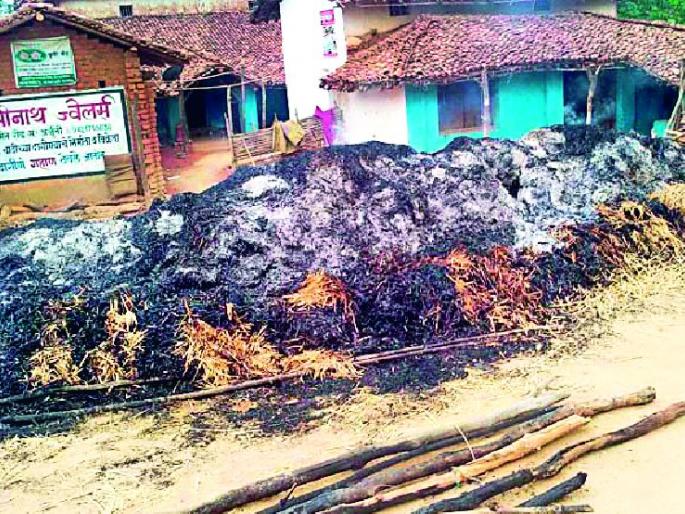 यावर गावातील ताराचंद बंसोड, खुशाल शहारे, मनोज शहारे, देवराम मानवटकर, लच्छू कुरसुंगे, धनलाल नागपुरे, सुरजोती नागपुरे यांनी वामन लांजेवार यांच्या घरातील बोअरवेलचे पाणी उपसून आगीला नियंत्रीत करण्याचा प्रयत्न केला. मात्र आगीमुळे तणसाचे ढिग जळून भस्मसात झाले. यात नागपुरे यांचे हजारो रूपयांचे नुकसान झाले असून त्यांच्याकडे असलेल्या जनावरांच्या चाऱ्याचा प्रश्न निर्माण झाला आहे. तणस जळून झालेल्या नुकसानाची शासनाने भरपाई देण्याची मागणी नागपुरे व गावकºयांनी केली आहे.