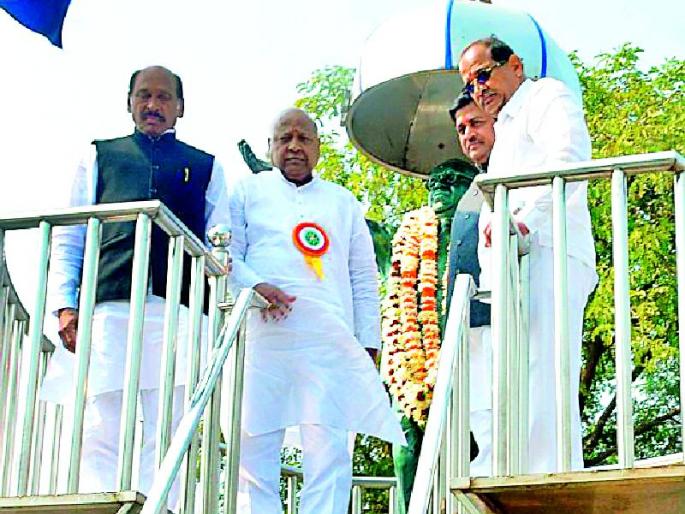 लोकमत न्यूज नेटवर्कगोंदिया : संघर्ष यात्रा घेऊन गोंदियात आगमन झाल्यानंतर माजी मुख्यमंत्री अशोक चव्हाण, विरोधी पक्ष नेता राधाकृष्ण विखे पाटील, विधान परिषदेचे उपसभापती माणिकराव ठाकरे, आमदार गोपालदास अग्रवाल यांनी येथील डॉ. बाबासाहेब आंबेडकर यांच्या पुतळ््याला माल्यार्पण करून अभिवादन केले.शेतकऱ्यांना सरसकट कर्जमाफी, धानाला २५०० रूपये हमी भाव द्यावा तसेच भाजप विरोधी धोरणाच्या विरोधात सुरू राज्यव्यापी संघर्ष यात्रेंतर्गत शुक्रवारी (दि.११) या नेत्यांचे गोंदियात आगमन झाले होते.याप्रसंगी हर्षवर्धन सपकाळ, माजी मंत्री नसीम खान, प्रदेश युवक कॉँग्रेस अध्यक्ष सत्यजीत तांबे, माजी आमदार सेवक वाघाये, प्रदेश सेवादल अध्यक्ष विलास अवताळे, जनसंघर्ष यात्रा संयोजक आषिष दुआ, एनएसयुआय प्रदेश अध्यक्ष समिर शेख, आशिष देशमुख, मुनाप हकीम, अनंत धारड, श्याम उमाळकर, अतुल लोंढे, सीमा मडावी, उमाकांत अग्निहोत्री, बबनराव तायवाडे, राजु वाघमारे, प्रमोद सोनवाने, रमाकांत ओझा, बंडू सावरंबांधे, रामरतन राऊत, डॉ. योगेंद्र भगत, डॉ. झामसिंग बघेले, सहेसराम कोरोटे, पी.जी.कटरे, पृथ्वीपालसिंग गुलाटी, उषा सहारे, उषा मेंढे, राधेलाल पटले यांच्यासह मोठ्या संख्येत कॉंग्रेस पदाधिकारी व सदस्य उपस्थित होते.