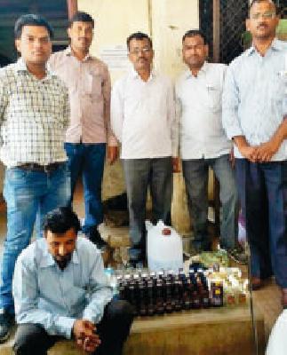 एकाला अटक : कारूटोला येथील कारवाई गोंदिया : स्पिरीटपासून बनावट विदेशी मद्य तयार करून ते विदेशी दारूच्या बाटल्यांमध्ये भरताना एका इसमाला राज्य उत्पादन शुल्क विभागाच्या पथकाने रंगेहात पकडले. ही कारवाई गोंदिया तालुक्यातील कारूटोला येथे करण्यात आली. यात त्या इसमाला अटक केली असून त्याच्याकडून सर्व साहित्य जप्त करण्यात आले. प्राप्त माहितीनुसार, कारूटोला येथे बनावट विदेशी मद्य बनविल्या जात असल्याची गुप्त माहिती उत्पादन शुल्क विभागाला मिळाल्यानंतर गोंदिया ग्रामीणचे दुय्यम निरीक्षक बी.जी. भगत यांनी सकाळी ७ वाजता आपल्या सहकाऱ्यांसह कारूटोल्यातील आरोपी सिंधनरेश माणिकचंद बिसेन (३७) याच्या घरी धाड घातली. यावेळी तो स्पिरीटच्या मदतीने बनावट विदेशी दारू तयार करताना आढळला. ती बनावट दारू ‘ओ.सी.ब्लू’ या बँ्रडच्या विदेशी मद्याच्या बाटल्यांमध्ये भरून विक्री केली जाणार होती. पथकाने त्या ठिकाणावरून १८० मिली क्षमतेच्या ओसी ब्लू कंपनीच्या बनावट विदेशी मद्याच्या ३५ बाटल्या, इंपेरियल ब्लू ब्रँडच्या बनावट मद्याच्या १८० क्षमतेच्या १८ बाटल्या, एका २० लिटर क्षमतेच्या प्लास्टिक कॅनमध्ये १० लिटर शुद्ध मद्यार्क (स्पिरिट), तसेच १८० मिलीच्या ४९ रिकाम्या बाटल्या आणि बॉटलिंगकरिता वापरण्यात येणारे बनावट बुच असा एकूण ९ हजार ७८४ रुपयांचा मुद्देमाल जप्त केला. सदर आरोपीविरूद्ध महाराष्ट्र दारूबंदी कायद्याखाली गुन्हा नोंदविण्यात आला. या आरोपीने बनावट दारू तयार करण्यासाठी स्पिरिट व बॉटलिंगसाठी साहित्य, बुच कुठून आणले याचा सखोल तपास सुरू आहे. ही कारवाई अधीक्षक नितीन धार्मिक यांच्या मार्गदर्शनाखाली दु.निरीक्षक भगत, सहायक दु.निरीक्षक हुमे, जवान पागोटे, उईके व वाहनचालक मडावी यांनी केले. (जिल्हा प्रतिनिधी)