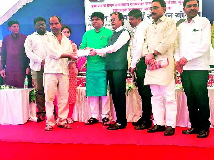 लोकमत न्यूज नेटवर्कगोरेगाव : येथील पंचायत समितीच्या भव्य आवारात शनिवारी (दि.१४) दुपारी १२ वाजता अटल विश्वकर्मा सन्मान योजनेंतर्गत बांधकाम व इतर कामागरांच्या शासकीय योजनाकरिता नोंदणी व मेळावा आयोजित करण्यात आला होता. या वेळी पाच हजार कामगारांना प्रमाणपत्रांचे वाटप करण्यात आले.मेळाव्याच्या अध्यक्षस्थानी सामाजिक न्यायमंत्री तथा पालकमंत्री राजकुमार बडोले, आ. विजय रहांगडाले, जिल्हाधिकारी डॉ. कादंबरी बलकवडे, माजी आ. हेमंत पटले, दिलीप चौधरी, रेखलाल टेंभरे, डॉ. लक्ष्मण भगत, नगराध्यक्ष आशिष बारेवार, जि.प. मुख्य कार्यकारी अधिकारी डॉ. राजा दयानिधी, सभापती माधुरी टेंभरे, खोमेश्वर रहांगडाले, न.प.उपाध्यक्ष सुरेश रहांगडाले, समाजकल्याण सभापती विश्वजीत डोंगरे, सुरेंद्र बिसेन, हिरालाल रहांगडाले, रेवेंद्रकुमार बिसेन, जि.प. सदस्य रोहीनी वरखडे, कृषी उत्पन्न बाजार समितीचे सभापती योगराज पारधी, तहसीलदार अरविंद हिंगे, उपविभागीय अधिकारी तळपाते, सहायक कामगार आयुक्त राजू गुल्हाने, खंडविकास अधिकारी सुभाष लिल्हारे, सीता रहांगडाले, पुष्पराज जनबंधू, संजय बारेवार, अनंत ठाकरे, पंकज रहांगडाले, मुख्याधिकारी हर्षिला राणे प्रामुख्याने उपस्थित होते. पालकमंत्री बडोले म्हणाले, विश्वकर्मा सन्मान योजनेत मजुरांना जीवन सन्मानाने जगता यावे, म्हणून शासनाने ही योजना सुरु केली आहे. यात २८ प्रकारच्या योजना असून गोंदिया जिल्ह्यातील सर्व कामगारांची नोंदणी होणार असल्याचे सांगितले. तर आमदार रहांगडाले यांनी कामगारांना नोंदणी करण्याचे आवाहन केले.ही योजना एखाद्या पक्षाची, जातीची, धर्माची नाही तर ती शासनाची योजना आहे. म्हणून हा कामगार मेळावा आयोजित करण्यात आल्याचे सांगितले. कार्यक्रमाचे प्रास्ताविक सहायक कामगार आयुक्त राजू गुल्हाने व संचालन पी.एम. गंगापारी यांनी केले.