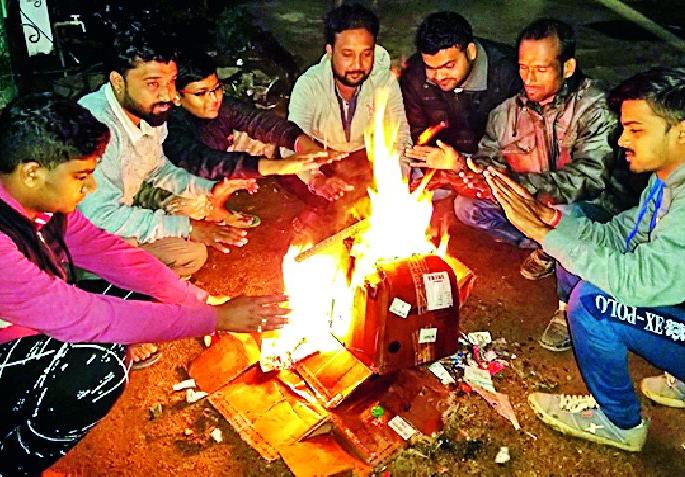 दिवसभर शेकोटीचा आधार घेत अनेक जण दिसत होते. सायंकाळी थंडीत वाढ झाल्याने रस्त्यावरही शुकशुकाट निर्माण झाला होता. हवामान खात्याने दिलेल्या माहितीनुसार ५ जानेवारीपर्यंत विदर्भात शीत लहर कायम राहण्याची शक्यता आहे. त्यामुळे आणखी काही दिवस हुडहुडी कायम राहणार आहे. या थंडीचा मनुष्यासोबतच प्राणीमात्रांवरही परिणाम होत आहे. अनेक पक्षी या थंडीमुळे मृत्यूमुखी पडण्याची शक्यता निर्माण झाली आहे. तसेच उघड्यावर झोपणाऱ्यांचे प्रचंड हाल होत आहेत. उब मिळविण्यासाठी शेकट्यांचा आधार घेत आहे. ही थंडी आणखी काही दिवस राहणार असल्याने अनेकांनी याचा धसका घेतला आहे.