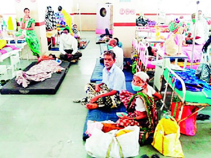 वार्ड बांधकामाअभावी रुग्णांवर जमिनीवर उपचार
