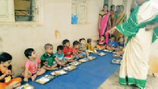 बाल भोजन : महिन्यातून एकदा अंगणवाडीतील बालकांचा बाल भोजन कार्यक्रम आयोजित केला जातो. असाच एक कार्यक्रम सिव्हील लाईन्समधील रविशंकर वार्डातील अंगणवाडी केंद्र-४ मध्ये घेण्यात आला. या वेळी बाल मंडळीने भोजनाचा आनंद घेतला.