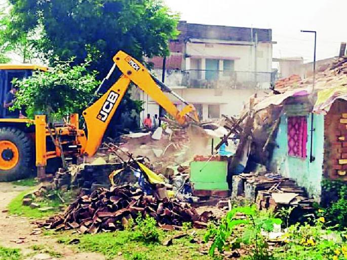 सात घरांवर चालविला जेसीबी