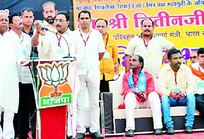 खराब वातावरणामुळे नियोजीत दौरा रद्द झाल्याची खंत त्यांनी व्यक्त केली. गडकरी म्हणाले, जगात भारताला महाशक्ती बनविण्याचे स्वप्न भारतीय जनता पक्षाचे आहे. यासाठी प्रत्येक क्षेत्राचा विकास हाच एक महत्वाचा मुद्या ठरतो. मुख्यमंत्री देवेंद्र फडणवीस यांच्या नेतृत्वात महाराष्ट्राने जी विकासाची कास धरली आहे, ती कायम राहण्यासाठी भाजप उमेदवारांना साथ द्या असे सांगितले.