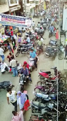 पार्किंग नव्हे हा तर रस्ता : व्यापारी शहर म्हणून परिचित असलेल्या गोंदिया शहरातील गोरेगाल चौक ते स्टेशन रोड या मुख्य मार्केट परिसरात सध्या खरेदीला एकच उधाण आले आहे. त्यामुळे वाहनधारकांना चक्क रस्त्यावर आपली दुचाकी वाहने अशी तिहेरी लाईन करून पार्क करावी लागत आहे. त्यामुळे पार्किंगमध्ये रस्ता हरवून गेला.