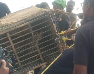 विहिरीत पडलेल्या बिबट्याला साडेपाच तासानंतर मिळाले जीवदान