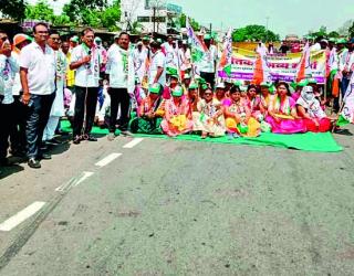 शेतकऱ्यांसाठी राष्ट्रवादीचे रास्ता रोकाे आंदोलन