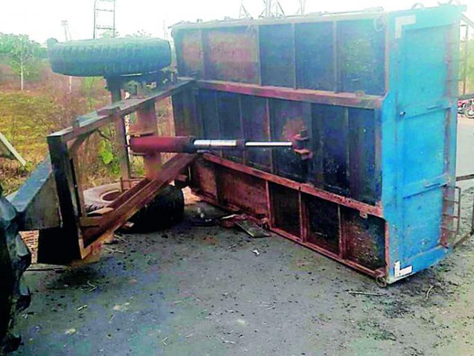 वऱ्हाड्यांचा ट्रॅक्टर उलटला