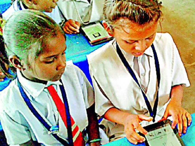 विद्यार्थी घेतात टॅबवर शिक्षण