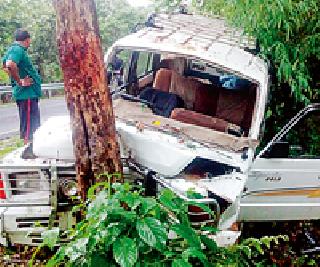 सात जण जखमी : सर्व जखमी सोनीतील रहिवासीसालेकसा : सालेकसा-दर्रेकसा मार्गावरील हाजराफॉल नजीकच्या वळणावर चारचाकी वाहन झाडावर आदळल्यामुळे सात जण जखमी झाले. चालकाच्या डोक्याला जास्त मार लागल्यामुळे त्याला तातडीने दवाखान्यात दाखल करण्यात आले. इतर सर्व जखमींवर ग्रामीण रुग्णालय सालेकसा येथे प्राथमिक उपचार केल्यानंतर गोंदियाच्या केटीएस रुग्णालयात रेफर करण्यात आले. जखमींमध्ये राधेश्याम वलचरे (५०), पांडुरंग नान्हे (४५), भुपेंद्र फुंडे (४०), अक्षय बावनकर (२२), जियालाल मौजे ४०), किसन मौजे (५०), भुमेश्वर मौजे (४५) यांचा समावेश आहे. हे सर्व सोनी येथील रहिवासी आहेत. दर्रेसाकडे जात असताना वळणावर ताबा सुटल्याने वाहन एका झाडावर जाऊन आदळले.