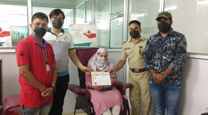येथील बाई गंगाबाई महिला रुग्णालयात दाखल एका युवतीला एबी निगेटिव्ह रक्ताची गरज होती. मात्र रक्तपेढीत तुटवडा असल्याने मोठी समस्या निर्माण झाली होती. दरम्यान याची माहिती वाहतूक पोलीस निरीक्षक दिनेश तायडे यांना मिळाली. त्यांचा पत्नीचा रक्तगट एबी निगेटिव्ह असल्याने त्यांनी पत्नीसह लोकमान्य ब्लड बँक गाठून त्यांच्या पत्नीने रक्तदान केले. वेळीच रक्त मिळाल्याने युवतीचे प्राण वाचविणे शक्य झाले.