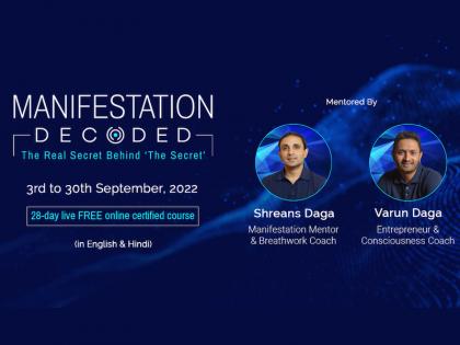 मॅनिफेस्टेशन डीकोडेड कोर्स हा २८ दिवसांचा लाईव्ह ऑनलाइन मेगा मास्टर कोर्स आहे. या कोर्समध्ये सहभागी झालेल्या व्यक्तींना मेडिटेशनची सवय लावण्यासाठी, एक समुदाय तयार करण्यासाठी, व्यक्त होण्याचं तंत्रज्ञान शिकणं आणि जागरुकता यासाठी मार्गदर्शन केलं जातं. श्रेयांस डागा आणि वरूण डागा यांनी इंग्रजी आणि हिंदीमध्ये या कोर्सचं आयोजन केलं असून दररोज १ ते २ तासांचं सत्र आयोजित करण्यात येतं. मॅनिफेस्टेशन डीकोडेड कोर्समध्ये चर्चा, मेडिटेशन, काही विषयांवर अभ्यास, कधी कधी होमवर्क आणि जर्नलिंगचाही समावेश करण्यात आला आहे. हा कोर्स तार्किक पद्धतीने तयार केला गेला असून यामध्ये विविध विषयांचा कालक्रमानुसार समावेश करण्यात आलाय. दरम्यान, यावेळी मोठ्या प्रमाणात करण्यात आलेल्या मागणीनुसार आणि अनेक लोकांना या कोर्सचा लाभ घेता यावा यासाठी यावेळी हिंदीतदेखील या कोर्सचं आयोजन करण्यात येणार आहे.