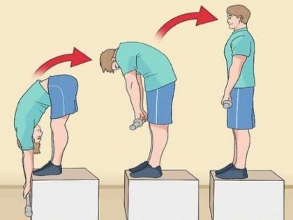 ही एक्सरसाइज करण्यासाठी एका बेंचवर किंवा बॉक्सच्या काठावर उभे रहा. दोन्ही हातांमध्ये केटलबॉल घ्या. जर वजन नसेल तर केवळ हात हायांवर ठेवून उभे रहा.