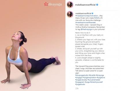 मलायका हा योगासनाचा प्रकार दाखवत असताना असं सांगते की या योगासनामुळे तुमची छाती, फुप्फुसं आणि खांदे स्ट्रेच होतात. ही एक सुपरपोज आहे. ज्यामुळे तुम्ही या वर्षी बारीक होण्यासाठी प्रयत्न केल्यास बारीक होऊ शकता.