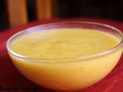 लाल भोपळ्याचे काप, कांदा, लाल मिरच्या, आलं,मसूण पेस्ट भाजलेलं जिरं दोन कप पाण्यात शिजवा. प्रेशर कूकरमध्ये १० मिनिटे हे मिश्रण शिजवल्यानंतर कूकर थंड होऊ द्या. सारे मिश्रण मिक्सरच्या भांड्यात काढून त्याची पेस्ट करा. हे सूप पचनक्रिया सुधारण्यास मदत करते.