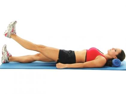 मॅटवर पडून गोल गुंडाळलेला टॉवेल मांडीच्या खालच्या बाजूला आधारासाठी घ्या. लोअर लेगला वर घ्या. १५-२० सेकंद याच पोझिशनमध्ये राहा. पायांना फ्लॅक्स पोझमध्ये ठेवा. हे १० ते १५ रिपिटेशन्स घ्या.