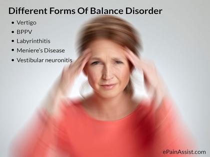 बॅलन्स डिसऑर्डर हे वेगवेगळ्या प्रकारचे असतात. यात बिनाइन पॅरोक्जिमल पोजिशनल वर्टिगो, लिब्रिन्थायटिस, मॅनियर्स डिजीज, वेस्टिब्यूलर न्यूरोनायटिस आणि मोशन सिकनेस इत्यादींचा समावेश आहे.