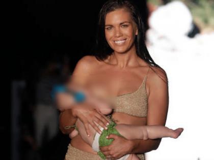 1. मॉडेलनं बाळाला दूध पाजत केला रॅम्पवॉक