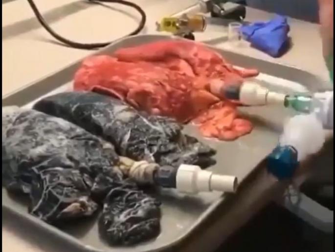 निरोगी विरुद्ध धूम्रपान करणाऱ्यांचे फुफ्फुसनिरोगी फुफ्फुसे गुलाबी आणि लवचिक असतात आणि हजारो अल्व्होलीपासून मुक्त असतात, जे रक्तप्रवाहात ऑक्सिजन पोहोचवणे आणि कार्बन डायऑक्साइड बाहेर टाकण्याचे कार्य करतात. तर, धूम्रपान करणाऱ्या व्यक्तीचे फुफ्फुस काळे, कठोर आणि खराब होतात, अल्व्होली संकुचित होते आणि त्यात श्लेष्मा जमा होतो. हे फुफ्फुसाचे कार्य कमी करते, ज्यामुळे श्वास लागणे, खोकला आणि थकवा यासारख्या समस्या उद्भवू शकतात. खालील व्हिडिओमध्ये पाहू शकता.