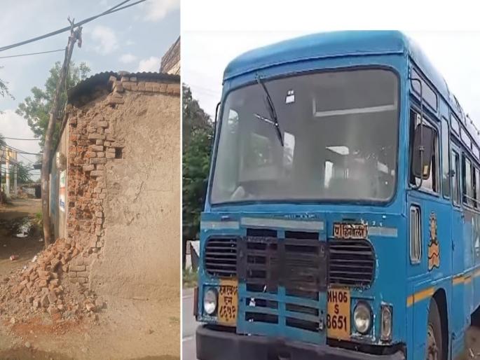 यात प्रल्हाद मुंढे यांच्या घराच्या भिंतीचे नुकसान झाले. तसेच शेजारीच असलेल्या गजानन मुंडे यांच्या घराच्या ओट्याचा भागही पडला. सुदैवाने या घटनेत कुणीही जखमी झाले नाही. यात एसटी बसचा पत्रा वाकला. घटनेची माहिती कळताच हिंगोली आगाराचे वाहतूक निरीक्षक एफ. एम. शेख यांच्यासह मजहर पठाण, विश्वनाथ सांगळे यांनी घटनास्थळी धाव घेतली. त्यानंतर विद्यार्थिनींना शाळेत पोहोचविण्यात आले.