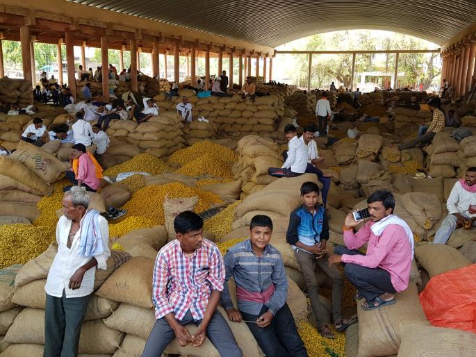 लोकमत न्यूज नेटवर्कहिंगोली : महाराष्टÑात सांगलीनंतर हिंगोलीतील कृषी उत्पन्न बाजार समितीध्ये हळदीची आवक आहे. यामध्ये वसमत येथील बाजार समितीचाही समावेश आहे. दोन्हीही ठिकाणी हळदीची आवक मोठ्या प्रमाणात वाढली आहे. तर शुक्रवारी हिंगोली येथील कृषी उत्पन्न बाजार समितीमध्ये साडे चार हजार क्विंटल हळदीची आवक झाली होती.गत तीन ते चार वर्षापासून पर्जन्यमान कमी असले तरीही शेतकऱ्यांनी पाण्याचे सुक्ष्मा नियोजन करुन पारंपारीक पिकाला बगल देत हळदीवर सर्वाधिक जास्त भर दिला आहे. त्यामुळे दिवसेंदिवस जिल्ह्यात हळदीचेक्षेत्र वाढले आहे. ज्या ठिकाणी खरीपाचे उत्पन्न किलो मध्ये होत होते त्या ठिकाणी आता हळद क्विंटलाने निघत आहे. काही शेतकरी तर पहिल्या वर्षी कमी बेणे लावगड करतात, त्यावरुन पुढील वर्षी हळदीची लागवड करायची किंवा नाही याचा निर्णय घेतात. मात्र पहिल्यावर्षी हळदीचे पिक घेणारा शेतकरी दुसºयावर्षी पिक घेणार नाही असा शोधूनही शेतकरी सापडणार नाही.आज घडिला जिल्ह्यात हळदीचे क्षेत्र वाढल्याने विक्री केंद्रावर हळदीची आवक वाढली आहे. त्यातच हिंगोली येथील कृउबा मध्ये सोमवार, बुधवार आणि शुक्रवार हे तीन दिवस हळद खरेदीसाठी ठेवण्यात आले आहेत. विशेष म्हणजे बीटच्या दिवशी ७ ते १२ वाजेपर्यंत आलेल्या हळदीचीच खरेदी केली जाणार असल्याने बीटच्या आदल्या दिवशी लांबलचक वाहनांच्या रांगा लागत आहेत. पुर्वी यार्डात कुठेही हळद उतरवुन पुन्हा हळद आण्ण्यासाठी वाहने जात होते. त्यामुळे या ठिकाणी शेतकºयांना हळद टाळण्यासाठी जराही जागा शिल्लक राहत नव्हती.त्यामुळे बाजार समितीने हळदीची आवक घेण्याचे नियोजन केले. त्यामुळे या ठिकाणी हळद विक्रीस आलेल्या शेतकºयांचा दोन ते तिन दिवसांचा मुक्काम टळण्यास तरी मदत झाली आहे. सध्या या ठिकाणी एका दिवशी बीट होऊन दुसºया दिवशी राहिलेल्या हळदीची बीट होऊन शेतकºयांना पैसे दिले जात आहेत.त्यामुळे शेतकºयांची पुर्वीप्रमाणे होणारी गैरसोय थांबण्यास आता पुर्णत: मदत झाली आहे. हळदीला ५ हजार ५०० ते ७ हजार ८३० रुपये प्रति क्विंटल भाव मिळाल्याची माहिती सचिव नारायण पाटील यांनी दिली.आता नाफेडने तुरीप्रमाणेच हरभरा खरेदीचे वेळीच आदेश बाजार समितीला दिले आहेत. मात्र या ठिकाणी वाढलेल्या हळदीच्या आवक मुळे नाफेडच्या केंद्रावर हरभरा विक्रीकरण्यासाठी नोंदणी केलेल्या शेतकºयांना हरभरा विक्री करण्यासाठी प्रतिक्षा करण्याची वेळ येत आहे. मात्र या ठिकाणी जागेचीभानगड सांगून हरभरा खरेदीसाठी टाळाटाळ केली जात आहे. इतर ठिकाणच्या नाफेड केंद्रावर हरभरा खरेदीस प्रारंभ होऊन खरेदीही सुरळीत सुरु आहे. मात्र हिंगोली येथील केंद्रावर हरभरा खरेदीसाठी महूर्त मिळालेला नसल्याने तो कधी 