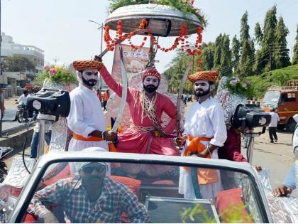 ढोल-ताशांच्या गजरात शहरातील मुख्य मार्गावरून शिवरायांच्या प्रतिमेची मिरवणुक काढण्यात आली.